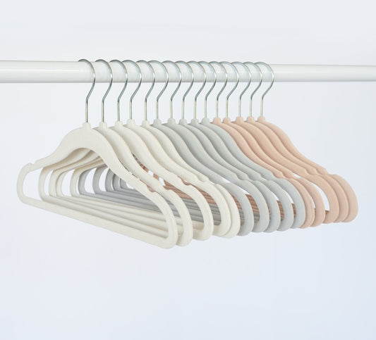 assorted velvet non-slip hangers (30 per set) - cream/gray/hazelnut