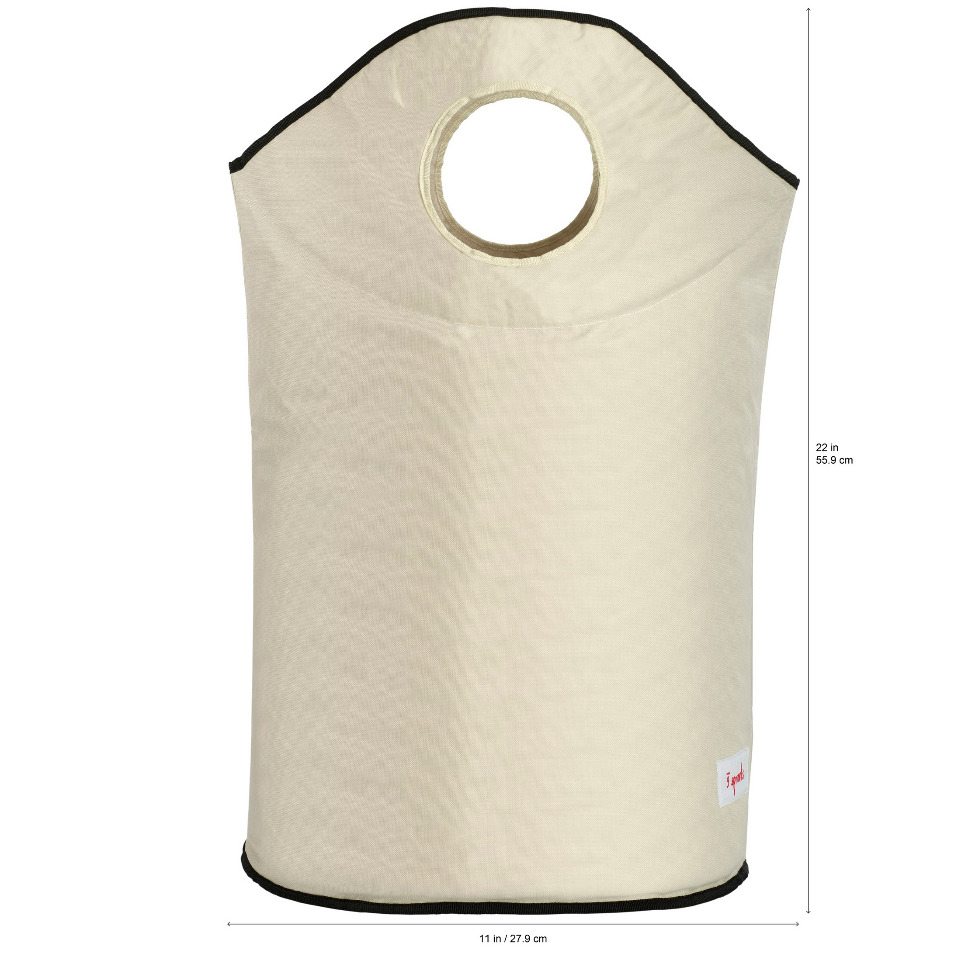 - Two large handles collapse, creating a circular opening that stylishly keeps dirty laundry out of sight